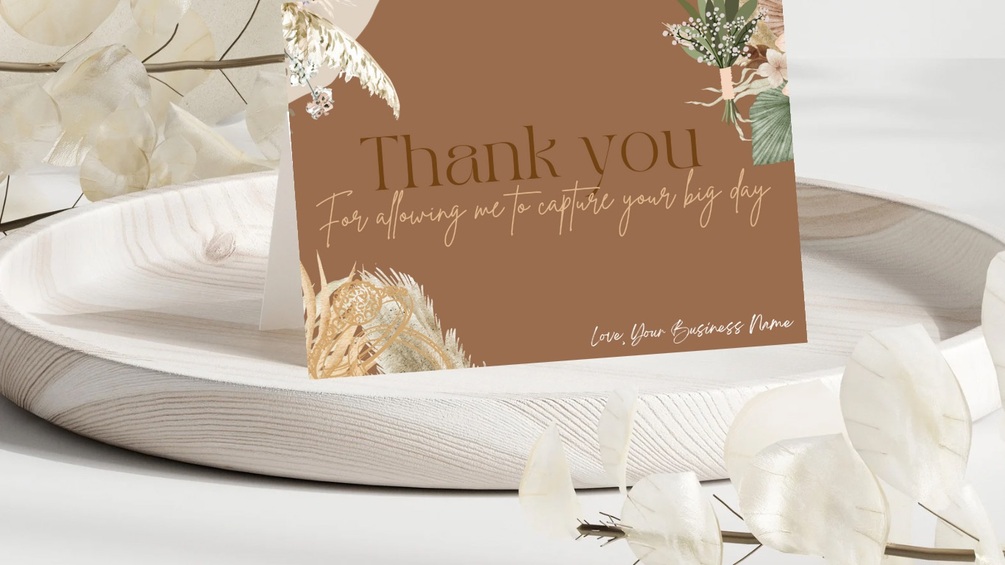 A beautiful Client Gift Note card for wedding photographers. Give your clients the best client experiance